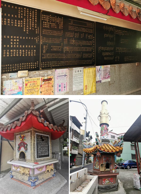 The one on the left has large fiberglass roof to protect it. To see the massive chimney and spark arrestor, another local Taiwan Province, Nantou temple is shown. They both have plenty of celestial Pixiu, lion and dragon motifs.